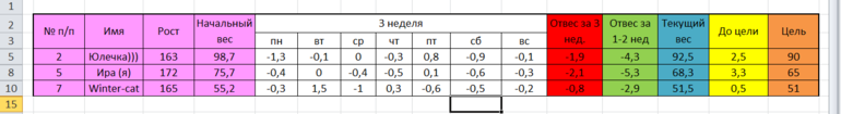 Привет, Юля! У меня -0,1, т.к. КД. Буду надеяться, что все-таки водичка задерживается, и все равно довольна, что уже скоро дойду к цели, хотя я поставила "завышенную" цель, но ничего за след неделю думаю точно дойду.