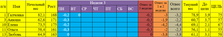 Галочка, вес на третьей неделе и не должен уходить. У меня в прошлый раз после вторника вообще привес был в 1 кило. Потом всю неделю держался примерно на одной отметке, а с понедельника как пошел вниз, каждый день отвес по 500-800гр. Я на глазах таяла. Так что не обращай внимания, просто придерживайся диеты. Главное не сорваться.