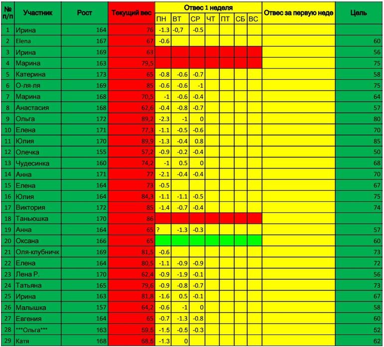 Наши отчеты и результаты:)Привет, девочки! Медленно, но верно мы идем к своей цели! С чем я нас и поздравляю!) Надеюсь, что все в строю?! Девочки, которые записывались в марафон и не отчитываются все эти дни, у вас сегодня последний шанс:-) Завтра всех "потеряшек" удалю из таблицы.