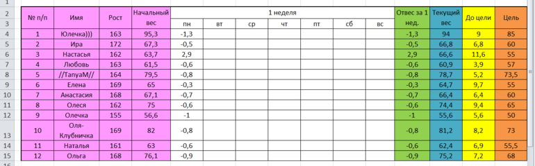 Наши отчеты и результаты:)Девочки, привет! Поздравляю всех с первыми отвесами, просьба не расслабляться, поскольку в первые дни уходит в основном из организма лишняя вода.