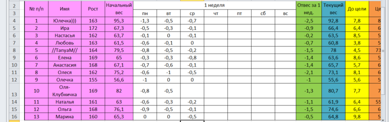 Наши отчеты и результаты:)Привет! Приближаемся к окончанию первой недели, впереди выходные, поэтому не забываем о питании!