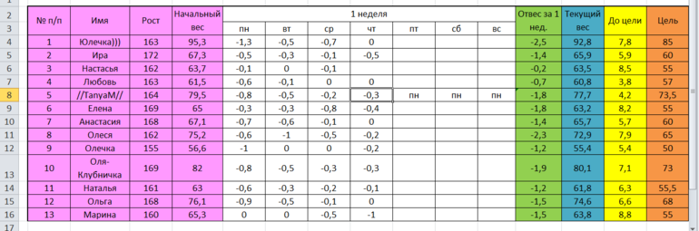 Наши отчеты и результаты:)Девочки, привет! Проблемы с инетом у меня, поэтому пишу кратко. Наша табличка: