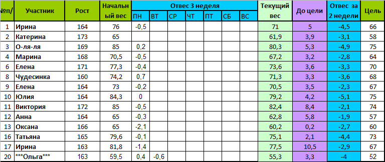 Ольга, исправь пожалуйста в графе общий отвес недели: стоит отвес только за первую неделю, а второй отвес не приплюсовался)))