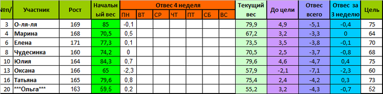Наши отчеты и результаты:)У меня вес предательски стоит, видимо мое любимое плато, а меню сегодня вкусное)