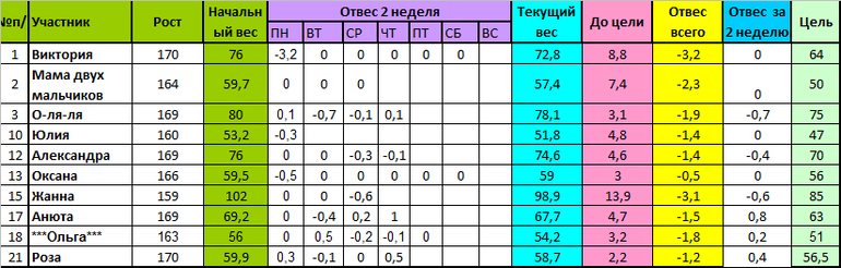 Добрый вечер всем девочкам худышкам! Я № 15, вчера исегодня не взвешивалась, рано уезжала, а весы в недоступе. Простите. В субботу с утра взвешусь! Спасибо.