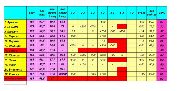 Ой, я тебя пропустила...завтра исправлю. Слушай, я до пятн веду таблицу, если желаешь, то можешь отчитаться мне последний раз в четверг.