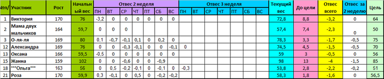 Привет. № 21 вес 58.1 отвес 200 гр. Я тоже пропущу 3 неделю. Целый день на фруктах не для меня.