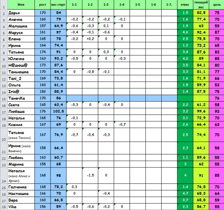 мои по нулям уже который день, но я честно говоря и эти дни нарушаю:( мотаюсь постоянно и ем где придется, стараюсь конечно приближено к меню, но...........