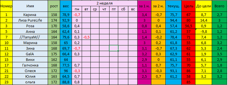 Наши отчеты и результаты:)Всем привет.Проверяйте табличку и пишите ваш номер,отвес и вес.