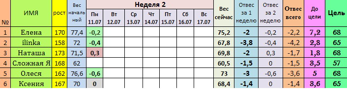 Наши отчеты и результаты:)Девчата, всем привет!!! Как вторая неделя? Вроде не успела начаться, а уже середина пройдена!! Все держимся, цель с каждым днем все ближе и ближе!!!
