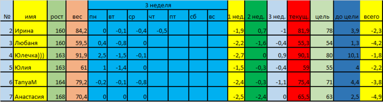 Добрый день. Я номер 4, у меня -200, вес 89,9кг. Я наверное 4 неделю первой заменю...