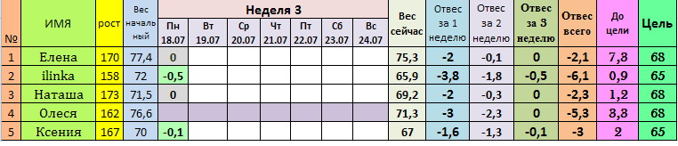 Наши отчеты и результаты:)Всем привет!!! Девочки, вот и опять наступила середина недели, дни летят.... Осталось всего-то ничего, 1,5 недели!!! У некоторых девочек совсем чуть - чуть осталось до цели!!! Терпим, идем до конца!!!