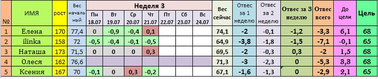 Наши отчеты и результаты:)Всем привет! Снова наступили выходные, снова разные соблазны кругом, вольности себе не позволяем, осталась всего одна неделька! Терпим!!!
