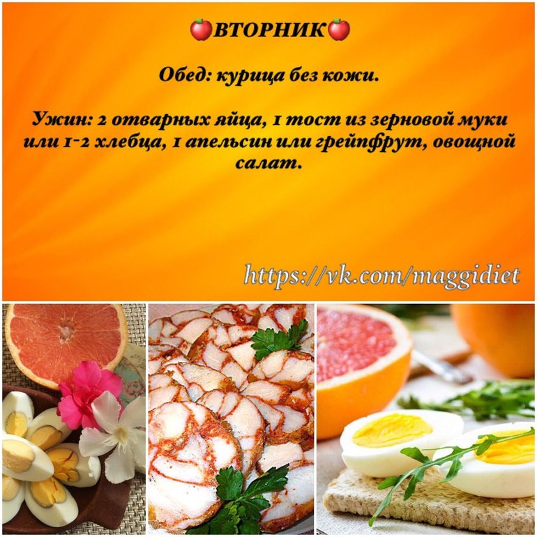 Я сегодня, во вторник вечером, не смогла съесть яйца, т.к. наелась салатом и грейпфрутом.