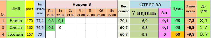 Четверг, совсем скоро закончится 8 неделя, а это, в общем-то, целых 2 круга Магги, девочки, постараемся под конец недели и порадуем себя хорошими отвесами!!!