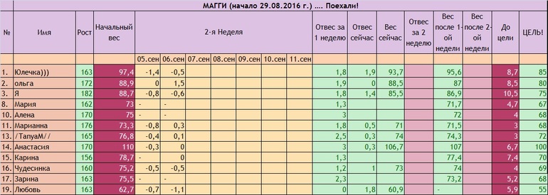 Наши отчеты и результаты:)Доброе утро! Среда прошла - середина недели прошла, а скоро и середина диеты!
