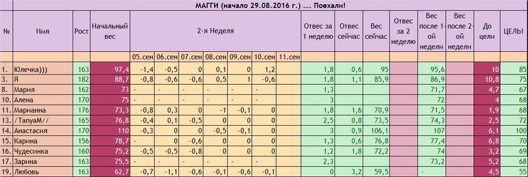 Всем привет! № 16, у меня за выхи +0,8, текущий вес 73,0. Но я простыла, вчера с температурой, сопли, но держусь, по объемам мне заметно)))