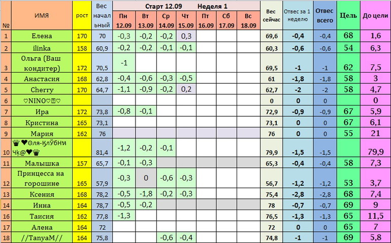 Вот и настали выходные первой недели, это значит, что скоро закончится неделя, а еще, что наступили дни, когда многие начинают косячить, девочки, не поддаемся на провокации со стороны родственников и друзей и держимся!! Цель важнее!!