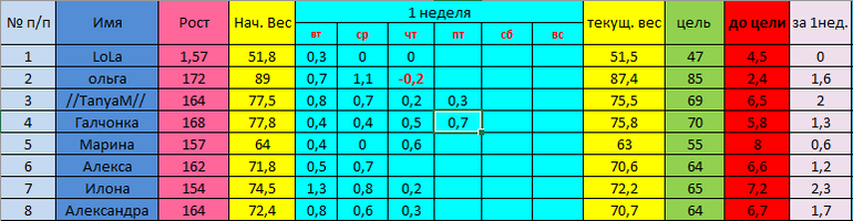 Наши отчеты и результаты:)Всем привет. Как ваши отвесики? Идут выходные, это тяжелое время для меня. Как бороться с этим? да еще и перед КД так кушать хочется, кошмар просто.