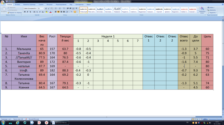 у нас не появляется наталья со своей второй попыткой, если от нее не будет отчета до воскресенья, я ее из таблички удалю, чтоб не путаться!