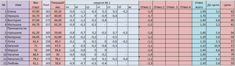 И наша табличка, много кто не отчитался за выходные, но надеюсь сегодня объявятся все!