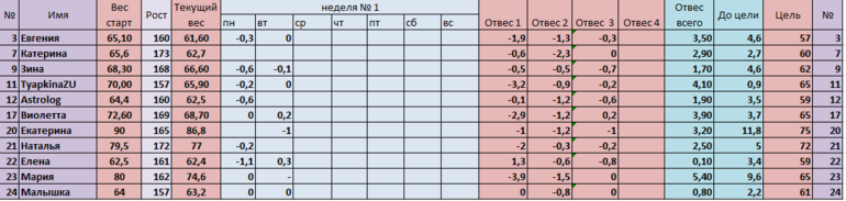 Всем привет. Я номер 11. У меня вес 65,3 (-0,4). После овощей хоть какой-то отвес. Не знаю смогу завтра отчитаться или нет, но вы меня не теряйте. У меня завтра тяжёлый день, мне будут делать операцию. Но я надеюсь скоро вернуться в ваши ряды😔.
