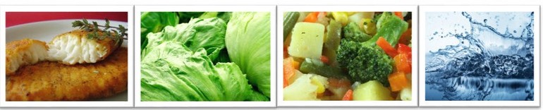 Рыба вареная или жареная в любом количестве, салат (только капуста или салат) в любом количестве, вареные овощи.