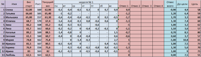 У нас просто еще собрались те кто худеет не первый круг)от этого и отвесы такие не большие....
