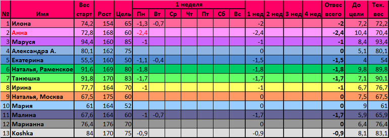 Наш лидер на сегодня Анна с -2,4, поздравляем, ура!!!! Кто же завтра будет нашим лидером? А?)))))
