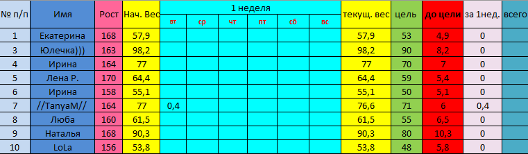 Всем привет.сегодня меня уже вес порадовал больше,хотя я понимаю,конечно, я не похудела,просто вода лишняя вышла,а все равно радует.))) вес утром был 53.8, - 1,3.