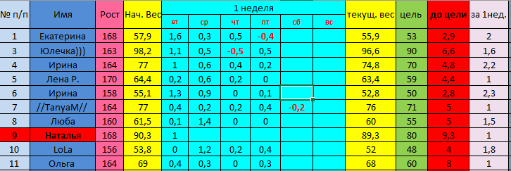 Доброе утро!в итоге заканчиваю я свою первую неделю с привесом в 100 гр.Номер 6,+0,1,вес 52.6.