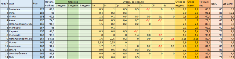 Жду отчеты оставшихся девочек. Потом подкорректирую табличку.