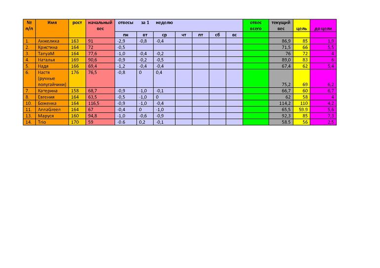 Всем привет! #13, сегодня -600гр, вес 91.7. Все пока прекрасно, довольно легко. В выходные сложнее будет. Отчитаться смогу только в понедельник, уезжаю из города (( не теряйте