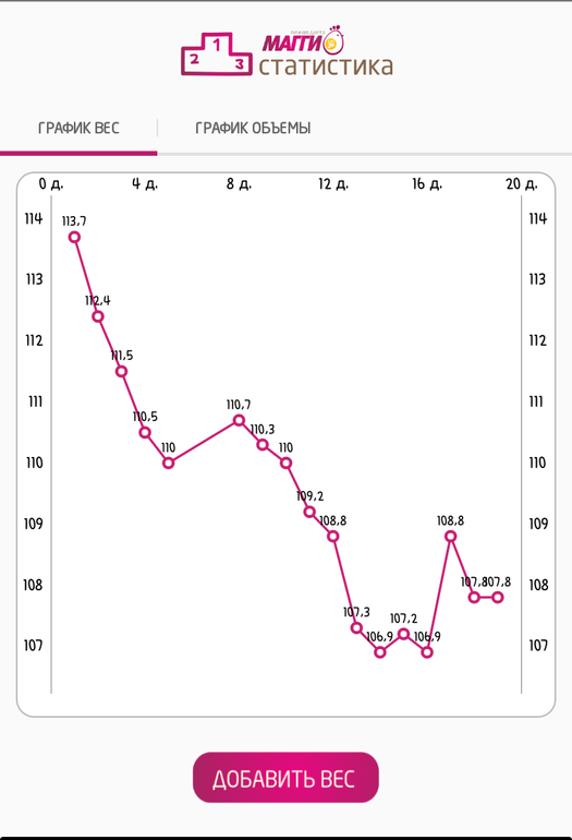 Наши отчеты и результаты:)Всем привет. Сегодня 19 день диеты и немножко нерадостный. Мой лишний овощной кг ну никак не хочет уходить. Кажется питаюсь же по меню. И без косяков. Вес остался тот же, 107,8 кг. Всего за 18 дней ушло 5,9 кг. А хочется больше, хотя бы до 105 дойти за остальные дни. Правда вчера бегала в туалет и сегодня тоже. Всем отвесов и хорошего настроения