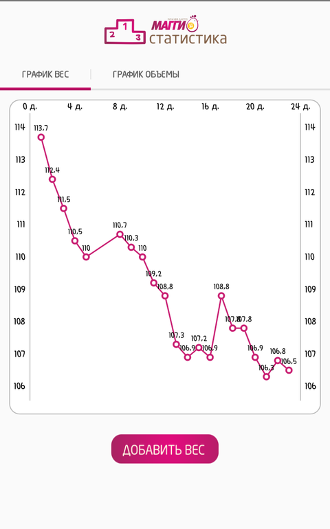 Наши отчеты и результаты:)Всем привет) мне осталось совсем чуть-чуть до конца, но уже думаю над вторым кругом. Скорее всего пойду после дня-двух отдыха. С утра взвеситься забыла, очень спешила на работу. Пришла с работы и на весах 106,5 в обед. По сравнению с вчера -0,3. Может быть доползу до 105. Очень хочется устроить зажор сегодня, повод есть, но не буду. Всем держаться до конца.