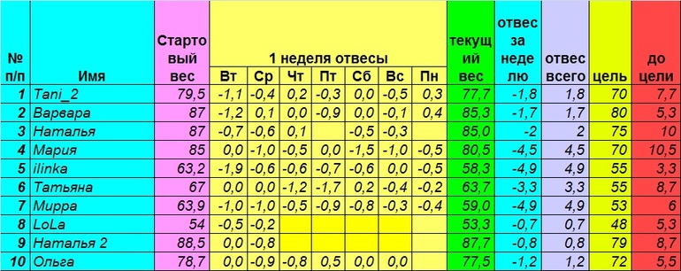 доброе утро:) настрой отличный. Сантиметры еще не мерила, щас посмотрю)) номер 4 вес утром 80,2(-300) вес стал уходить видимо медленее.