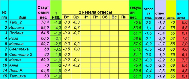 Сегодня четверг второй недели. Мы продолжаем. Жаль только, что нас становится меньше:(