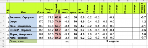 Я не взвешиваюсь несколько дней. Так что пишу нули.
