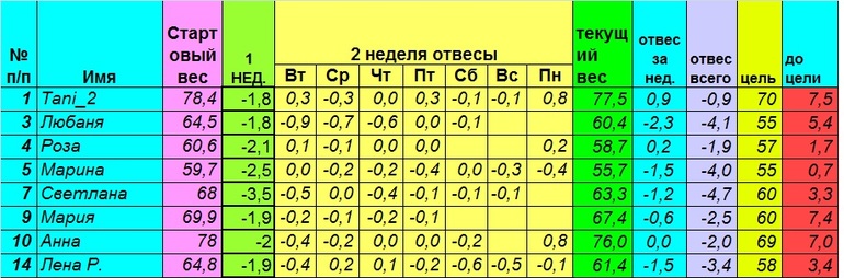 Девочки, всем привет. Мдя, мы конечно (не все, но половина) расслабились. Надо собрать волю в кулак и к победе!!!