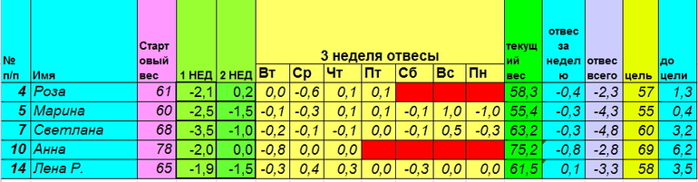 Если все таки нужен, то пишите свои отвесы/привесы сюда за сегодня и завтра, табличку обновлю потом