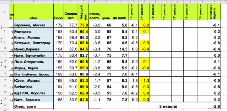 Наша табличка (забыла почистить от меток, ими я отмечаю вписанные новые значения)