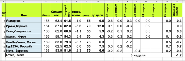 Итоговая табличка по третьей неделе.