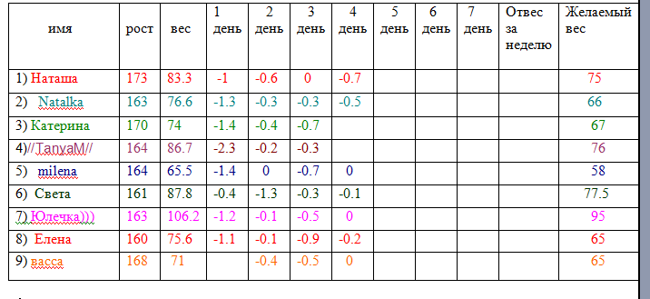 Привет всем.У меня по новым весам 0,т.к я загремела в больницу.Но я все соблюдаю!!!муж готовит впрок!!!Но тут в больнице старые весы,и не знаю правильный вес или нет