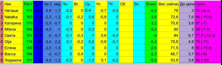Наши отчеты и результаты:)Доброе утро всем!Уже пятница!У меня -0.5(78),я рада!Опять вчера 3 км с дочей ходила,может это помогает.