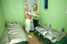 Вот это прессоштаны, на этой процедуре лежат 25 миут. Штаны надуваются зонами и в течение этого времени вас массируют, очень хорошо осуществляется лимфодренаж, за счет этого уходят отеки. Очень хорошо, особенно вечером после тяжелого дняя