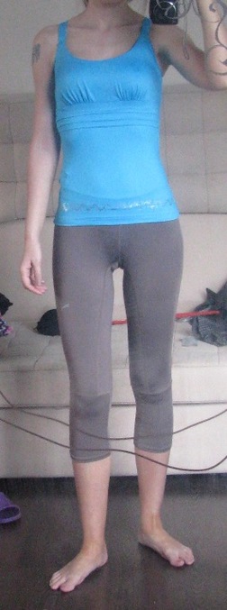 Зимой ходила в леггинсах или бриджах, сейчас майка легкая и максимально короткие шорты) Мне тоже жарко очень... На последнем фото все вполне прилично, ничего вызывающего)