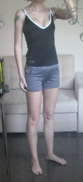 Это в таких шортах вы стесняетесь?))) Ооооо!!! Я думала речь пойдет об ультра-коротких, с пол-попой наружу. )) Я хожу сейчас в хлопковых тонких леггинсах и хлопковой же майке, типа "алкоголички". В хлопке не так жарко. Хочется, конечно, в шортах... но не хочется приковывать к себе внимание вызывющей одеждой (ваши шорты не вызывающие). Или в мой зал ходит одна девушка не первой молодости в шортах-трусиках, попа.... раза в 2 шире вашей и под слоем целлюля - я искренне не понимаю зачем? Но зато глядя на нее я усерднее занимаюсь)) И еще есть причина по которой я ношу леггинсы длинные - от депиляции до депиляции волоски же отрастить еще нужно. Не будешь же пушистиком щеголять,