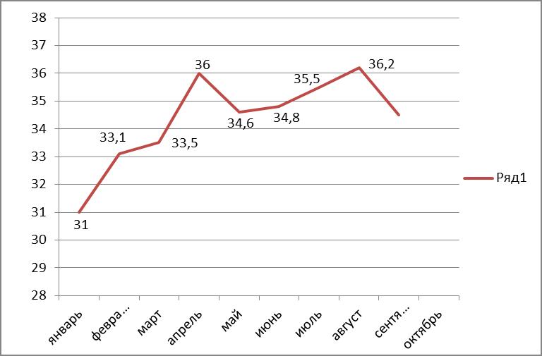 Вот мой график контроля мышечной массы. И вот виден резкий спад с 36,2% до 34,5