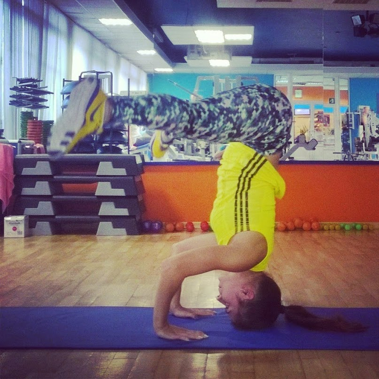 Занимаюсь в тренажерке, но с меньшими весами и исключая упражнения с натуживанием, то есть глубокие приседания с весом, а так же все упражнения, где сильно задействованы мышцы пресса и, естественно, где нужно лежать на животе. Кроме того, оставила свою любимую йогу. И все еще практикую стойки на голове, которыми полностью заменила упражнения на мышцы спины.