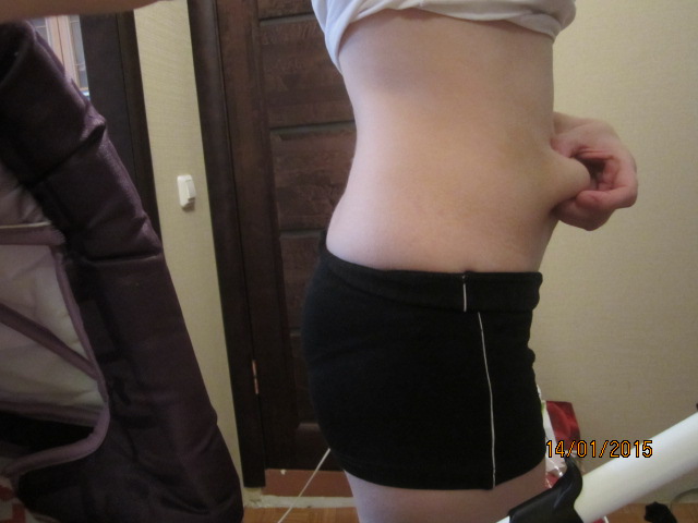 Клевый животик, у меня побольше. А вообще старайтесь, наклоны руками до пальчиков ног на прямых ногах, сколько сможите ( чем больше, тем лучше) . после КС труднее убирается живот.